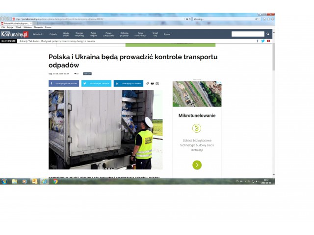 1. Portal KOMUNALNY.PL – artykuł „Polska i Ukraina będą prowadzić kontrole transportu odpadów”