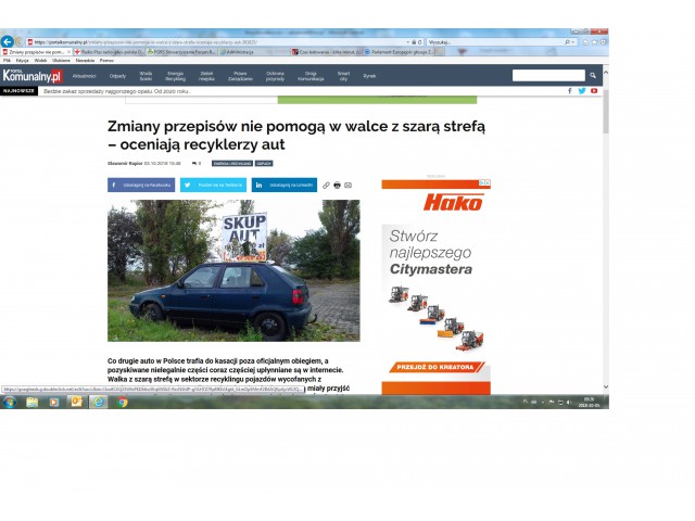1. Portal KOMUNALNY.PL – artykuł „Zmiany przepisów nie pomogą w walce z szarą strefą – oceniają recyklerzy aut”