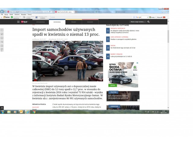 3. Gazeta RZECZPOSPOLITA – artykuł „Import samochodów używanych spadł w kwietniu o niemal 13 proc.”