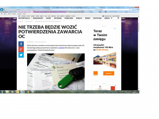 1. Portal INTERIA.PL – artykuł „Nie trzeba będzie wozić potwierdzenia zawarcia OC”
