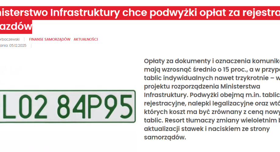 - Portal prawo.pl artykuł – „Ministerstwo Infrastruktury chce podwyżki opłat za rejestrację pojazdów”