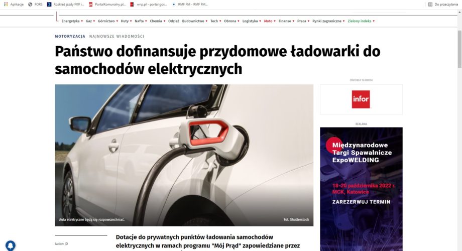 2. Portal WNP.PL – artykuł „ Państwo dofinansuje przydomowe ładowarki do samochodów elektrycznych”