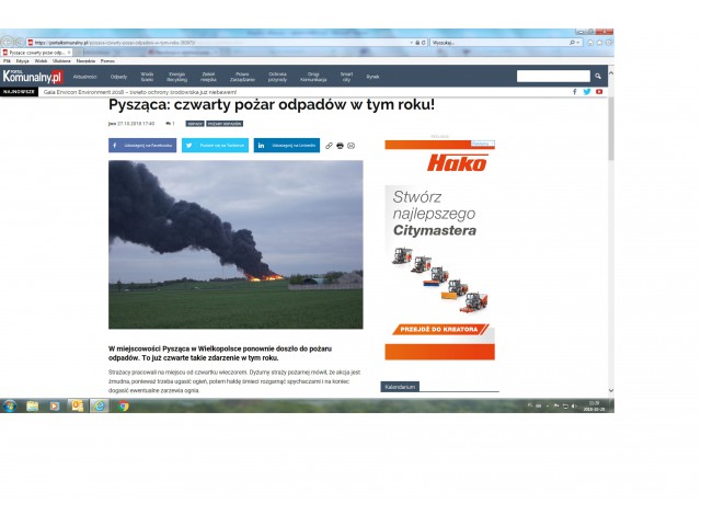 1. Portal KOMUNALNY.PL – artykuł „Pysząca: czwarty pożar odpadów w tym roku!”