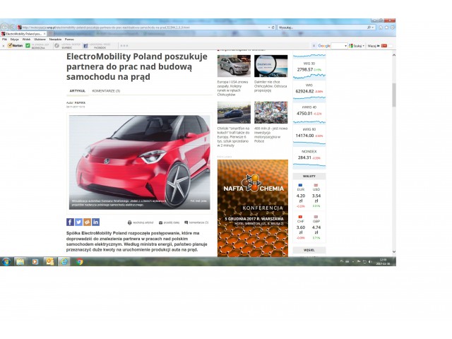 3. Portal WNP.PL – artykuł „ElectroMobility Poland poszukuje partnera do prac nad budową samochodu na prąd”
