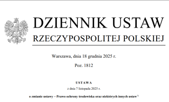 Dnia 15 grudnia 2025 roku Prezydent RP Karol Nawrocki podpisał: Ustawę z dnia 7 listopada 2025 r. o zmianie ustawy – Prawo ochrony środowiska oraz
