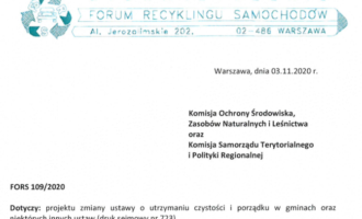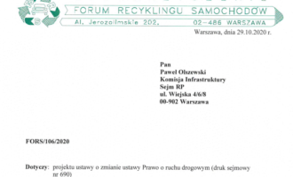 Uwagi FORS do Komisyjnego projektu zmiany ustawy prawo o ruchu drogowym (druk sejmowy 690), który przewiduje możliwość wyrejestrowania pojazdu bez konieczności przekazania go do stacji