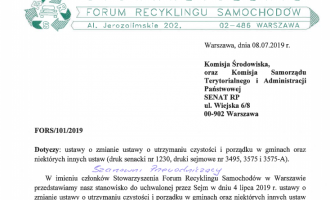 W dniu  11 04 2019 odbyło  się posiedzenie Komisji Senackich na temat wpływu ustawy o odpadach na działalność zakładów przemysłowych w Polsce. Stowarzyszenie FORS przesłało