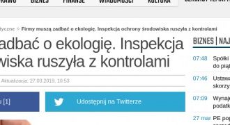 Inspekcja ochrony środowiska ruszyła z kontrolami – Ekologia – Gazeta Prawna – wiadomości, podatki, prawo, biznes i finanse. https://serwisy.gazetaprawna.pl/ekologia/artykuly/1405114,inspekcja-ochrony-srodowiska-ruszyla-z-kontrolami.html autor: Jakub Pawłowski27.03.2019, 07:01; Aktualizacja: 27.03.2019,