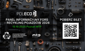 Portal poleco.pl zaprasza na październikowe „Międzynarodowe Targi Ochrony Środowiska” https://poleco.pl/pl zaproszenie na panel Informacyjny Stowarzyszenia FORS https://poleco.pl/pl/aktualnosci/panel-informacyjny-fors-recykling-pojazdow-2026/ Portal legislacja.rcl.gov.pl projekt ustawy – „Kolejna zmiana prawa