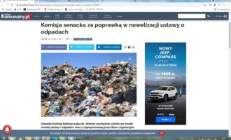 1. Portal KOMUNALNY.PL – artykuł „ Komisja senacka za poprawką w nowelizacji ustawy o odpadach” https://portalkomunalny.pl/komisja-senacka-za-poprawka-w-nowelizacji-ustawy-o-odpadach-426046/ 2. Portal WNP.PL – artykuł „ ​W Zawierciu powstanie