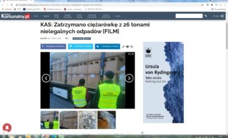 1. Portal KOMUNALNY.PL – artykuł „ KAS: Zatrzymano ciężarówkę z 26 tonami nielegalnych odpadów [FILM]” https://portalkomunalny.pl/kas-zatrzymano-ciezarowke-z-26-tonami-nielegalnych-odpadow-film-426361/ 2. Portal BUSINESSINSIDER.PL – artykuł „ ​Czy auta elektryczne