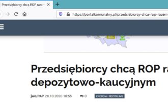 1. Portal KOMUNALNY.PL – artykuł „Przedsiębiorcy chcą ROP razem z systemem depozytowo-kaucyjnym” https://portalkomunalny.pl/przedsiebiorcy-chca-rop-razem-z-systemem-depozytowo-kaucyjnym-411140/ 2. Portal KOMUNALNY.PL – artykuł: „Krystian Szczepański (IOŚ-PIB): Problemy z BDO staramy się usuwać na