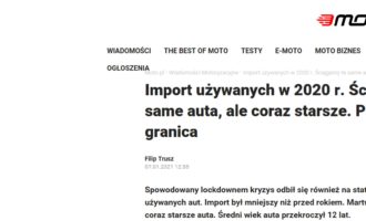 1. Portal MOTO.PL – artykuł „Import używanych w 2020 r. Ściągamy te same auta, ale coraz starsze. Padła kolejna granica” https://moto.pl/MotoPL/7,88389,26666402,import-uzywanych-w-2020-r-sciagamy-te-same-auta-ale-coraz.html 2. Portal PB.PL – artykuł: „Śmieciowa rewolucja