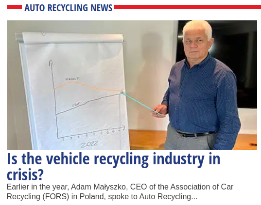 Earlier in the year, Adam Małyszko, CEO of the Association of Car Recycling (FORS) in Poland, spoke to Auto Recycling World about his views on where the vehicle recycling industry was headed. We caught up with Adam to see whether or not his predictions about 2022 were accurate.