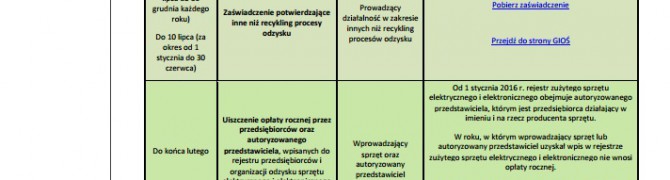 Kalendarium GIOŚ dla przedsiębiorców na 2016 rok