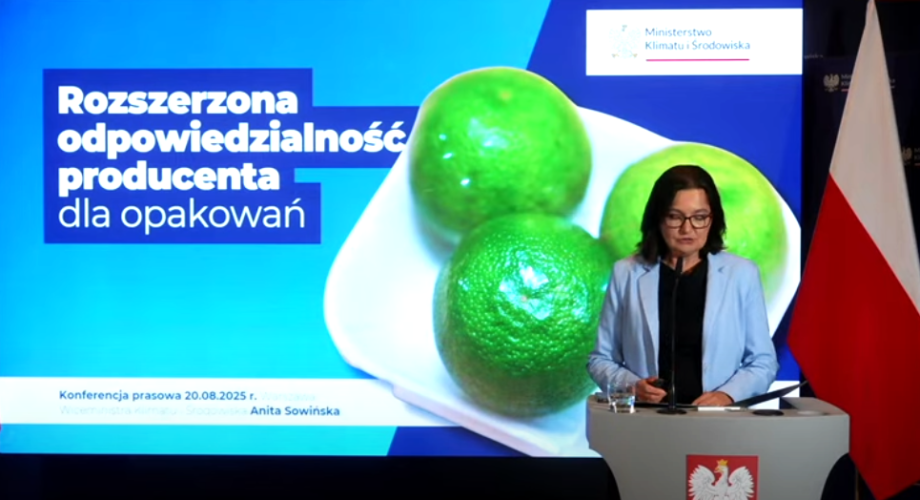 Konferencja wiceministry klimatu i środowiska Anity Sowińskiej na temat systemu rozszerzonej odpowiedzialności producenta (ROP) dla opakowań.