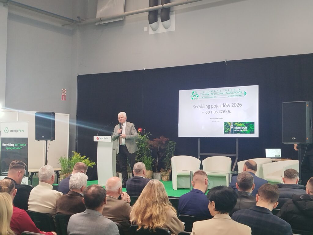 Za nami intensywny start 26. edycji targów EKOTECH pełen rozmów, spotkań i prezentacji nowoczesnych rozwiązań dla gospodarki odpadami. Tematyka zagospodarowania pojazdów wycofanych z eksploatacji zyskuje dziś szczególne znaczenie – zarówno regulacyjne, jak i środowiskowe. Dużym zainteresowaniem cieszyły się zagadnienia dla transportu i przetwarzania odpadów, w tym ważnym punktem programu dla całej branży był panel Stowarzyszenia FORS pod hasłem „Recykling pojazdów 2026 – co nas czeka”.